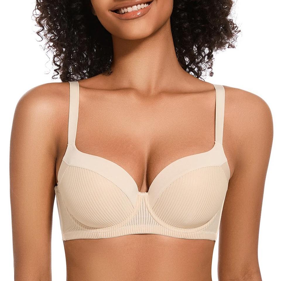 Plus Size Women's Simple Style T-Shirt Bra Push-Up Underwire Lightly Padded Full Coverage Plunge Bras Supportive Comfortable