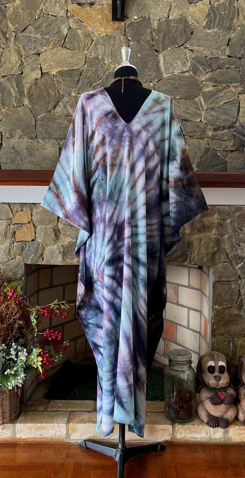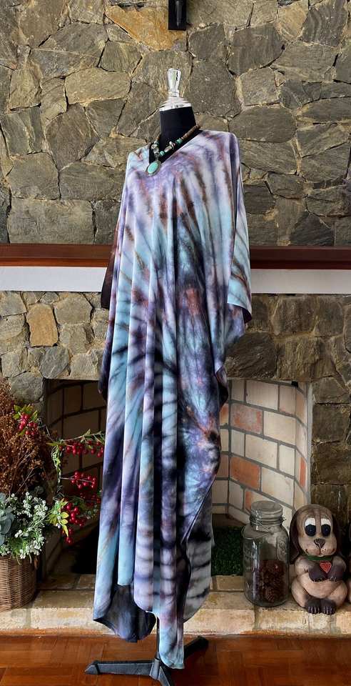 Plus Size Turquoise Tie Dye Rayon Caftan Dress Relaxed Fit Beach Coverup Women Wear