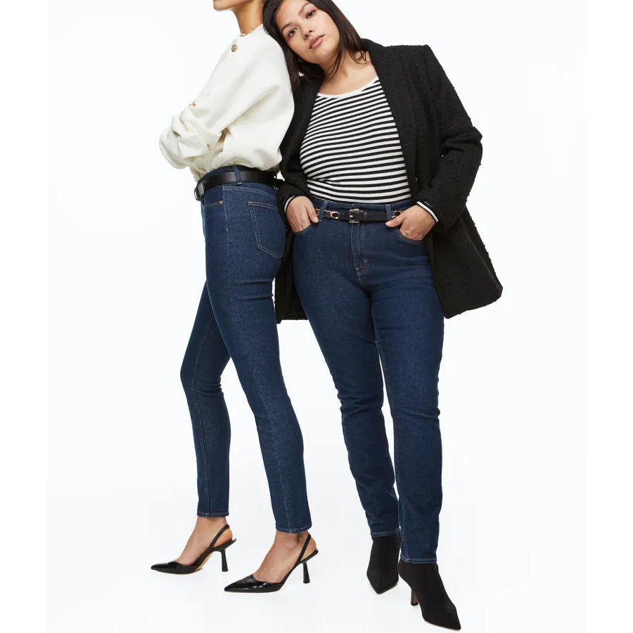 Plus Size Vintage Blue Washed Women's Denim Pants Skinny Straight Fit Women Jeans With Pockets High Waisted Jeans For Ladies