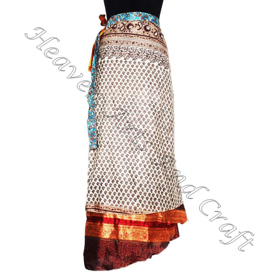 Plus Size Vintage Silk Magic Wrap Skirt From Jaipur India 2 Layer Reversible Magic Silk Saris Wrap Long Skirt Beach Wear Vintage