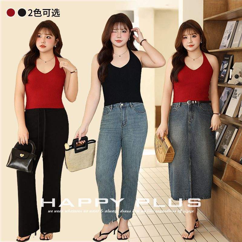 Plus Size Women's Knit Halter Tank Top Solid Color V Neck Ribbed Sleeveless Camisole Vest Red