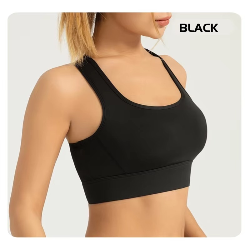 Plus Size Women's Sports Bra for Gym Yoga High-Strength Shock-Absorbing Medium Support with Removable Pads and Front Logo