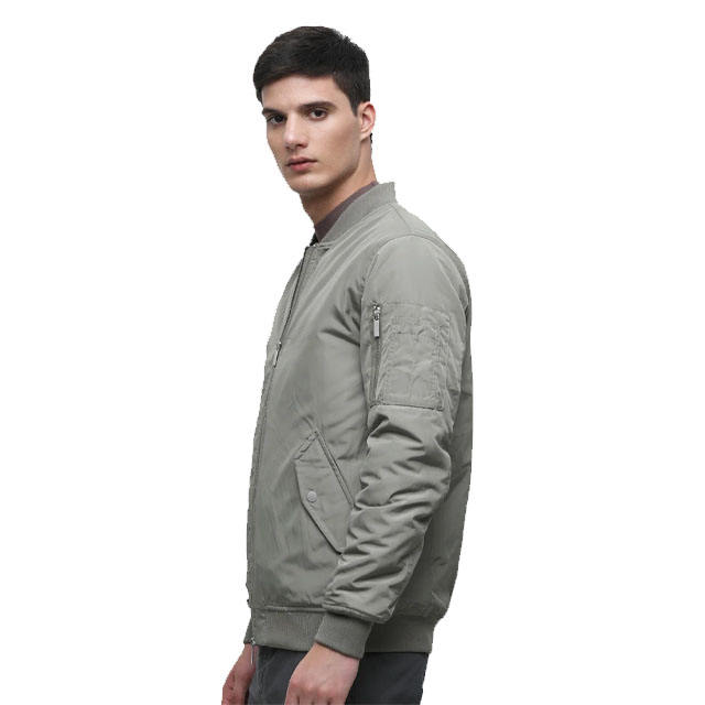 Dual Slider Brass Zip Cotton Ribbed Collar Cuffs Plus Size Casual Streetwear Style Bomber Jacket with Dual Slider Brass Zip