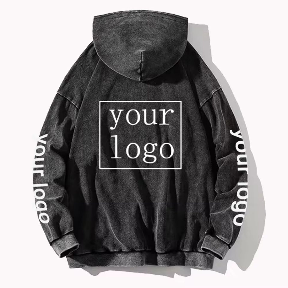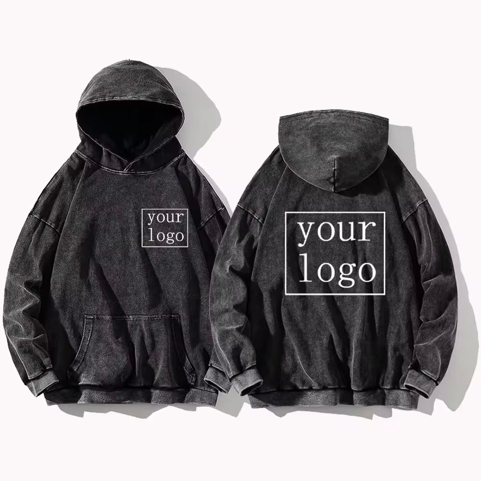 Plus Size High Street Black Multi All Color Hip Hop Custom logo Oversized Acid Wash Hoodies Men Vintage Washed t Shirt
