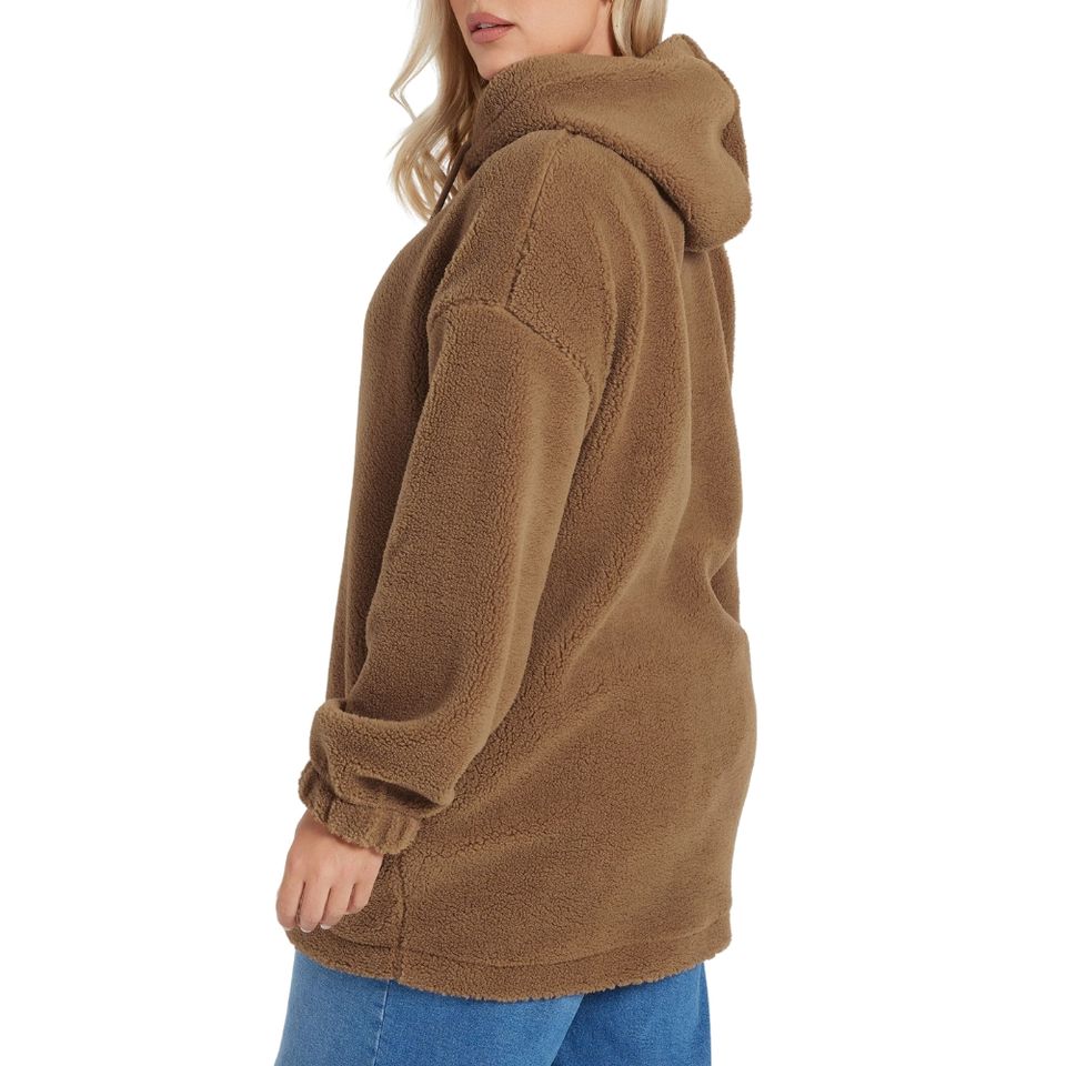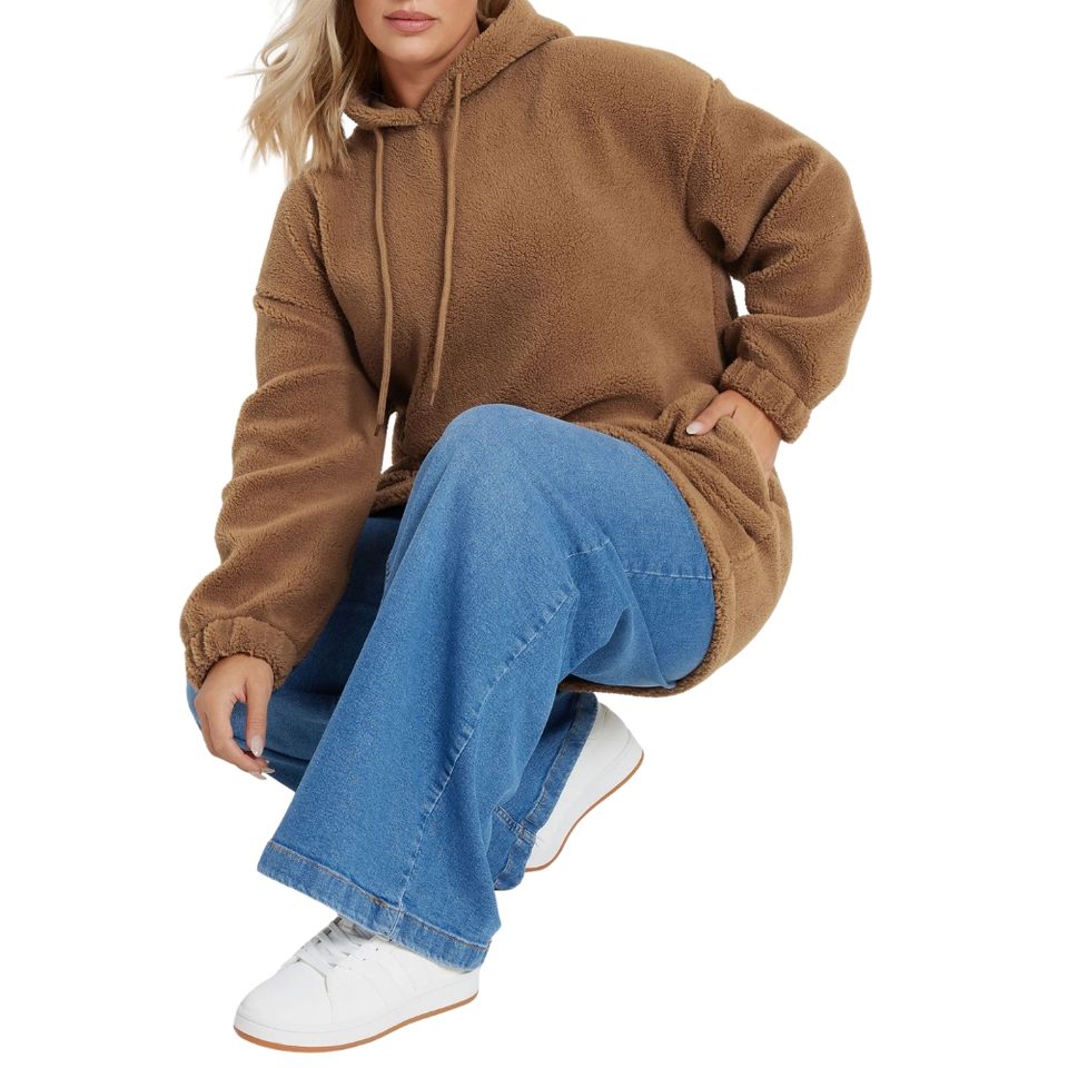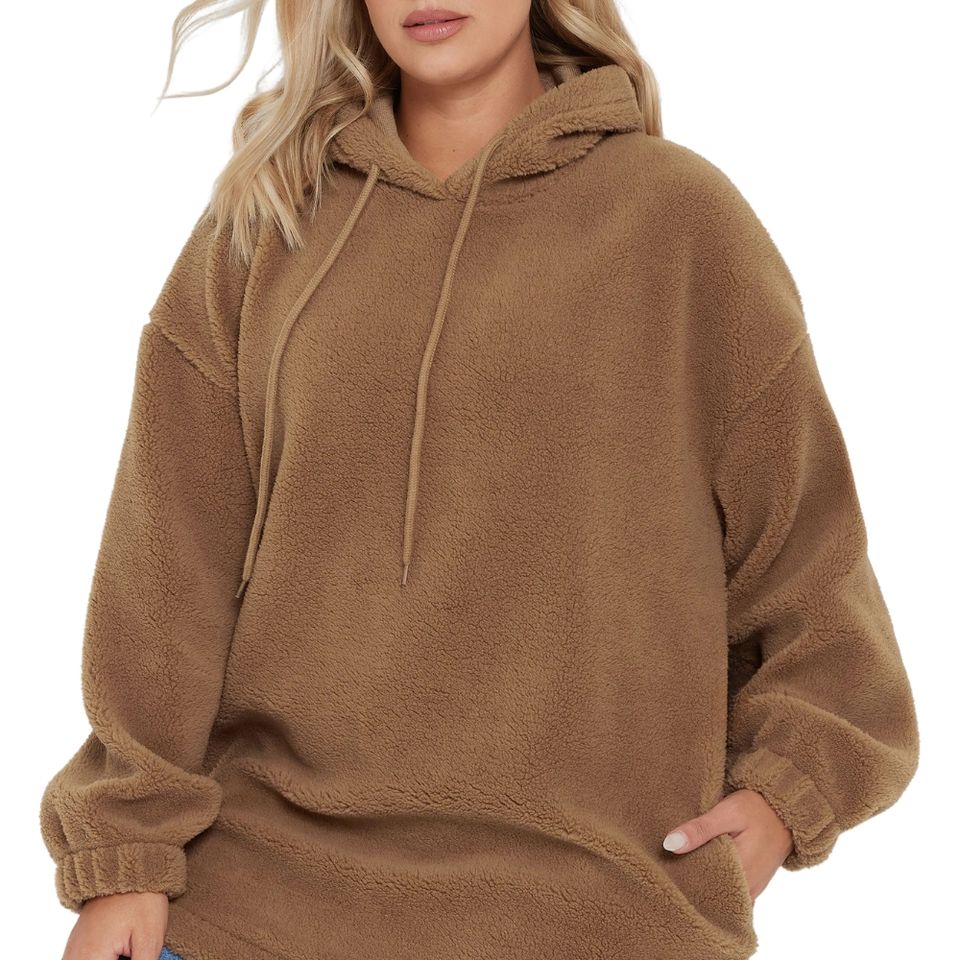 Plus size brushed fleece hoodie womens long sleeve warm soft plush pullover cozy relaxed fit custom colors