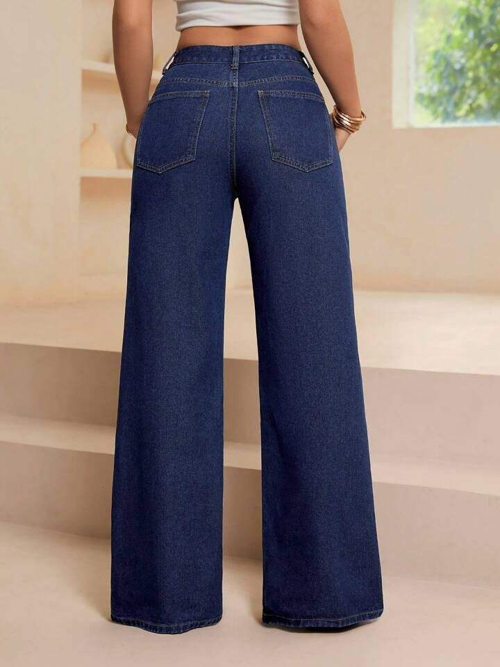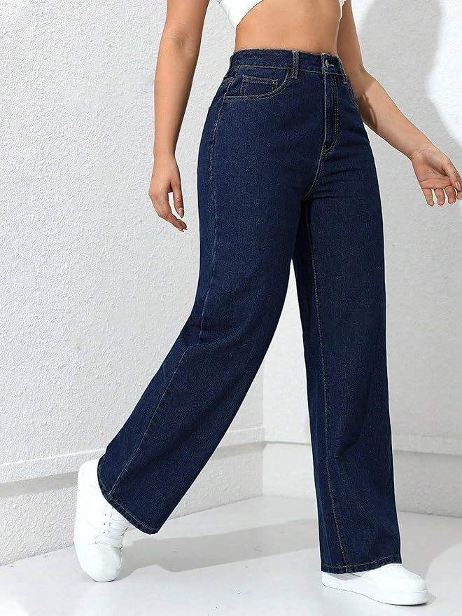 Plus Size Women's Casual Mid Waist Stretch Denim Straight Pencil Pants Solid Cargo Jeans Comfy Fit Perfect Daily Wear