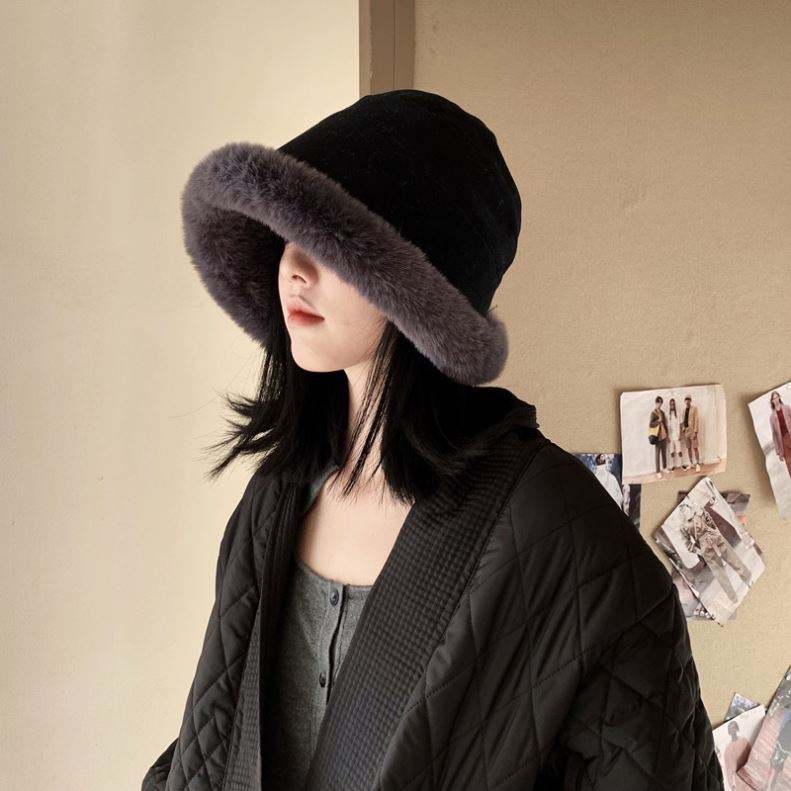 Plush Fisherman Hat Women's Winter Fashion All-Matching Thickened Warm Ear Protection Face Small Bucket Cap
