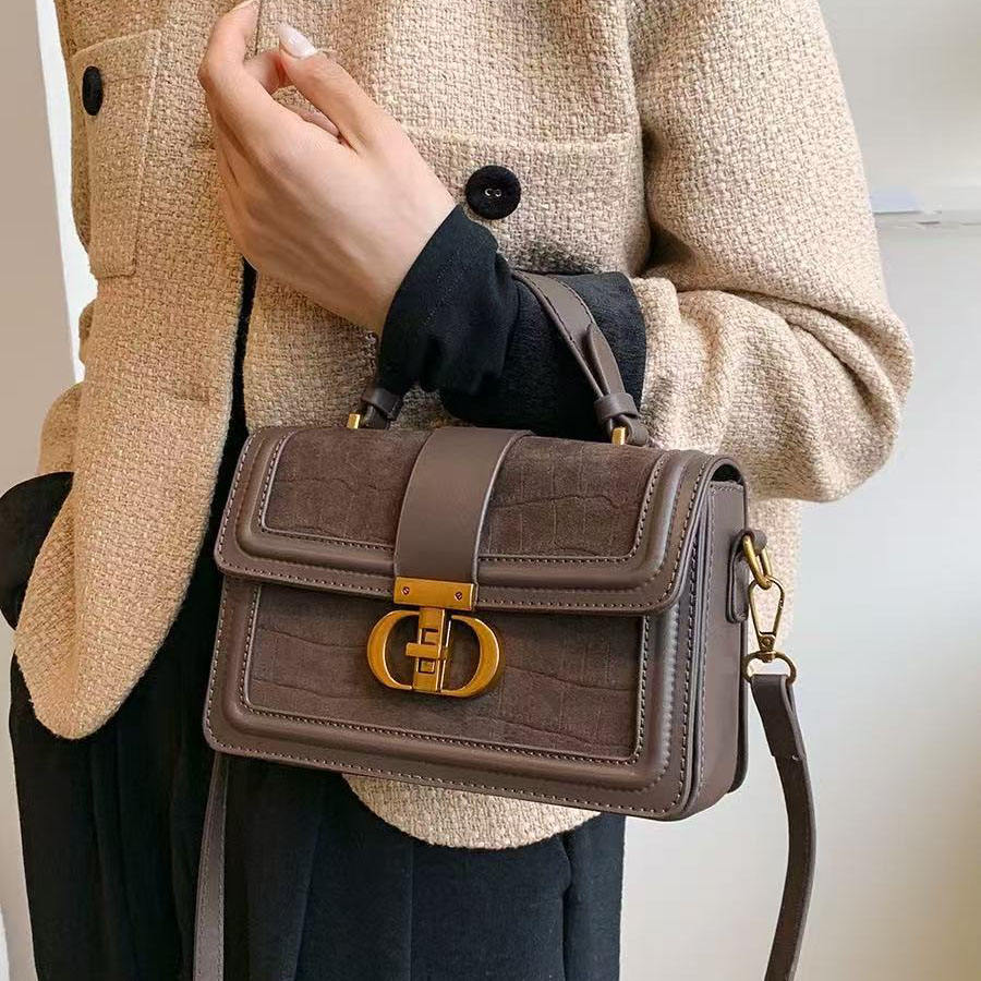 Plush and Suede Patchwork Small Square Bag Handheld and Crossbody Design for Women