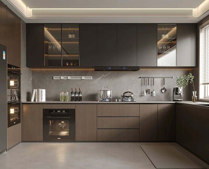 Plywood Kitchen Storage Cabinet Supplier Quartz Stone Cupboards Modern Design for Apartment Developer Builder
