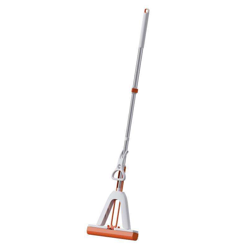 Plywood Mop With Telescoping Handle Rectangular Beige Orange For Household Bathroom Cleaning Foldable Hands Free Wringer