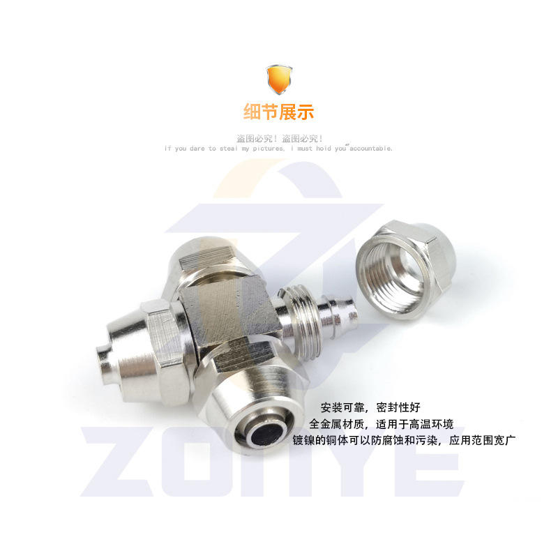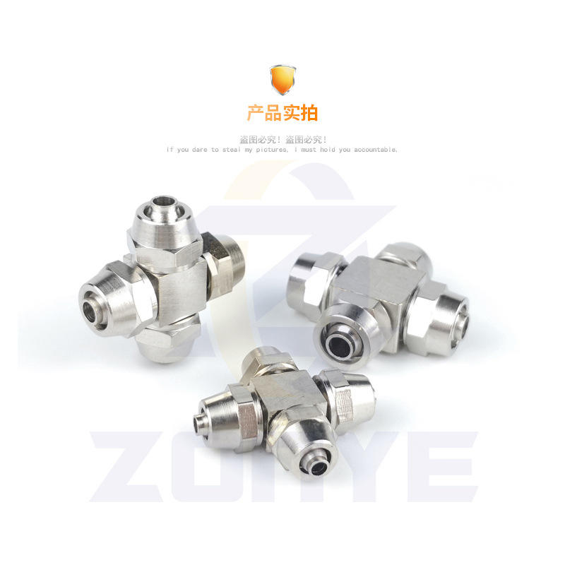 Pneumatic Four Way Quick Connect Fitting PZA4 6 8 10 12mm Nickel Plated Copper Cross Lock Nut Air Hose Connector