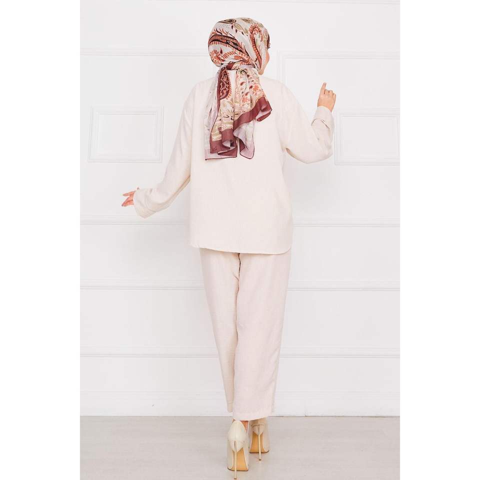 Pocket Detailed Linen Hijab Set Stone