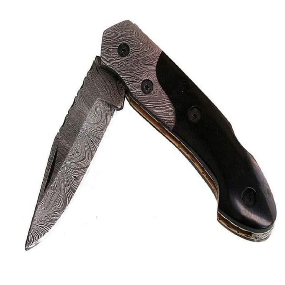 Pocket Knives Custom Handmade Damascus Pocket Knife Lock Low Price Pocket Hunting Knife With Leather Sheath