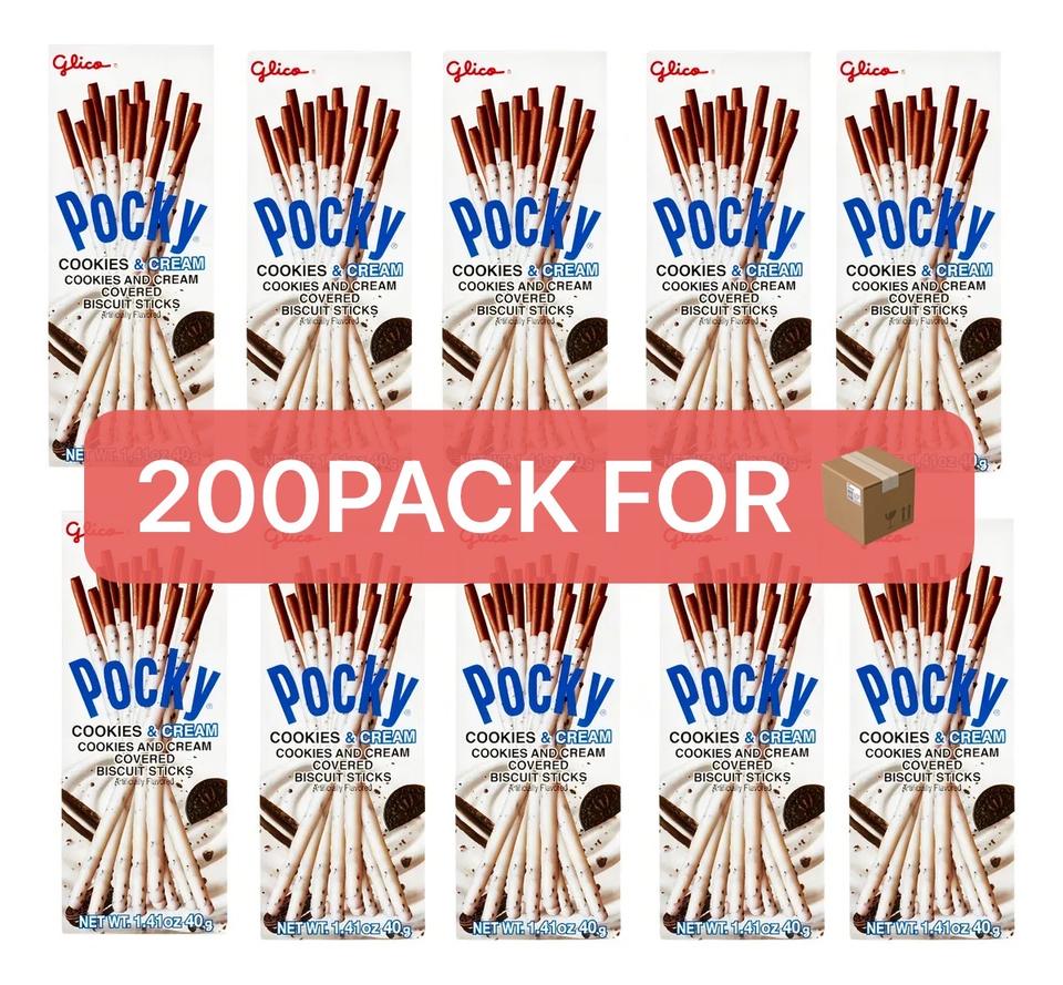 Pocky Cookies & Cream 40g x200pcs/Box Palitos de Galleta con Cobertura de Importado de Corea Japon y China al Mayoreo