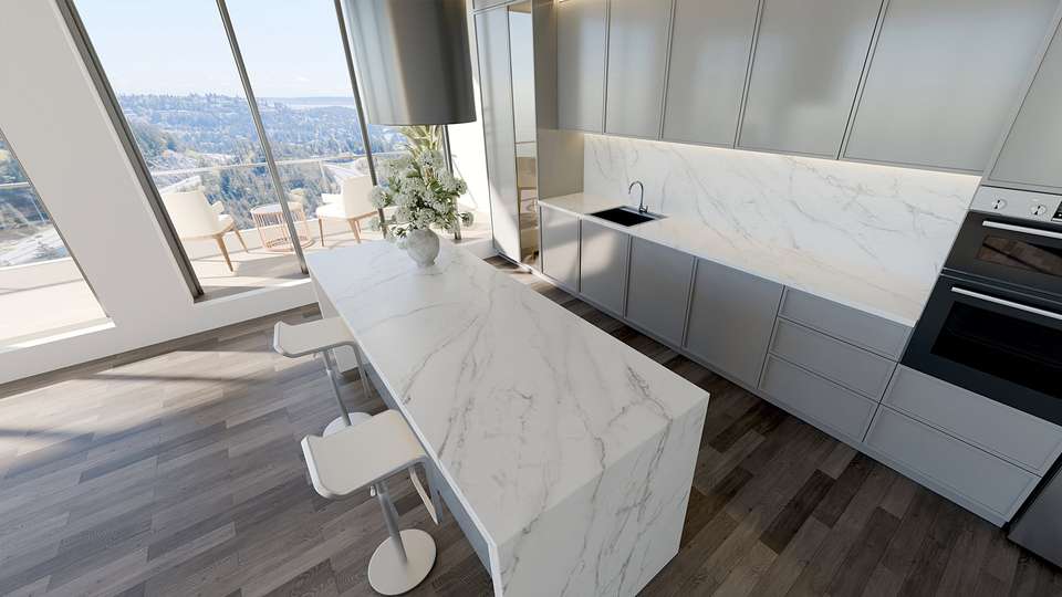Podima Printed Quartz Slab Kitchen Countertop Vanity Top 2cm 3cm Polished For Commercial Construction Projects Use