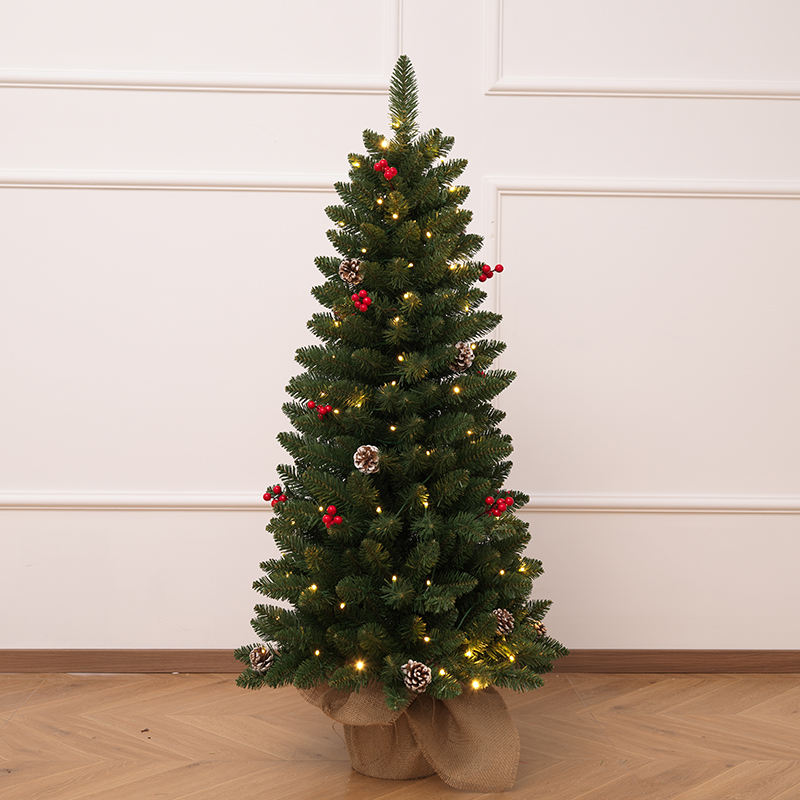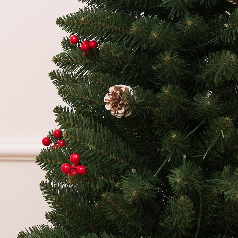Pointed-Tip PVC Mini Tabletop Christmas Tree with Pinecones & Red Berries, Festive Ornament for Living Room & Bedroom Decoration