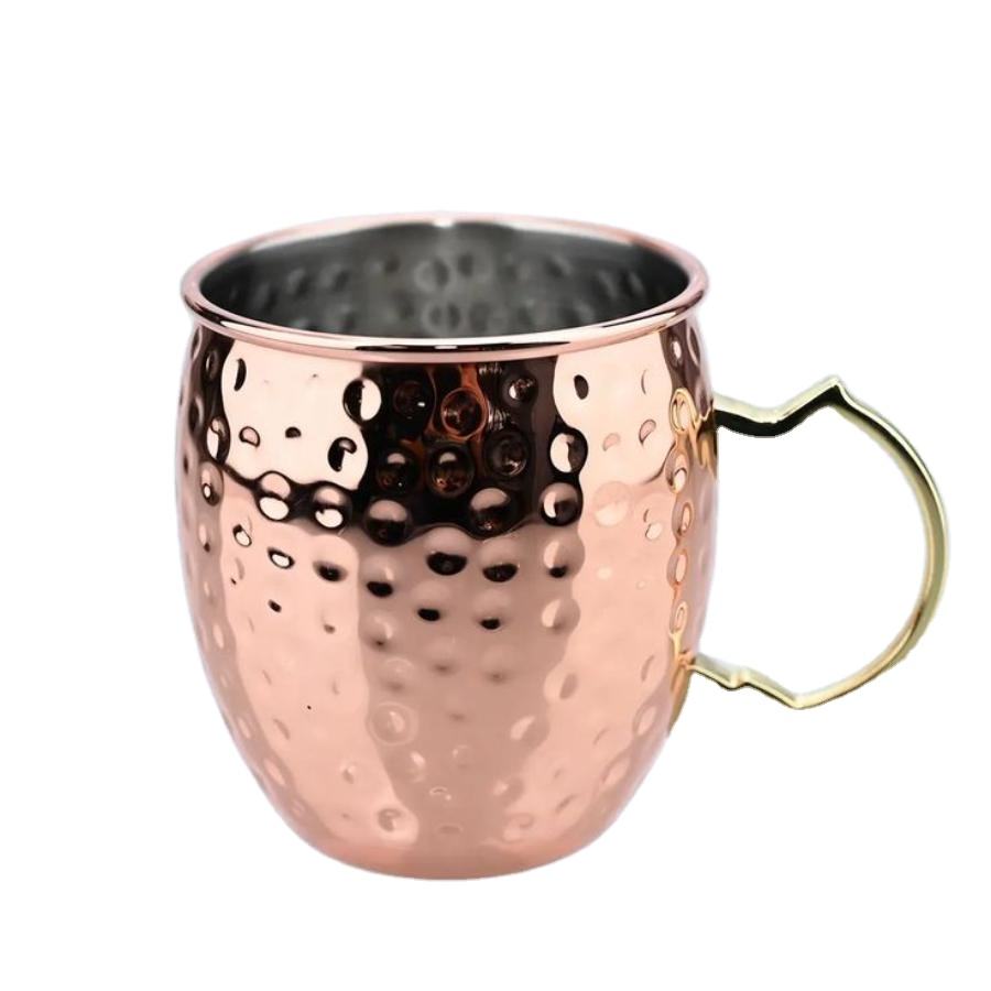 Polish Copper Moscow Mule Mug With Brass Handle Hammered Design Beer Mug For Parties OEM Customized Moscow Mule Mug French Style