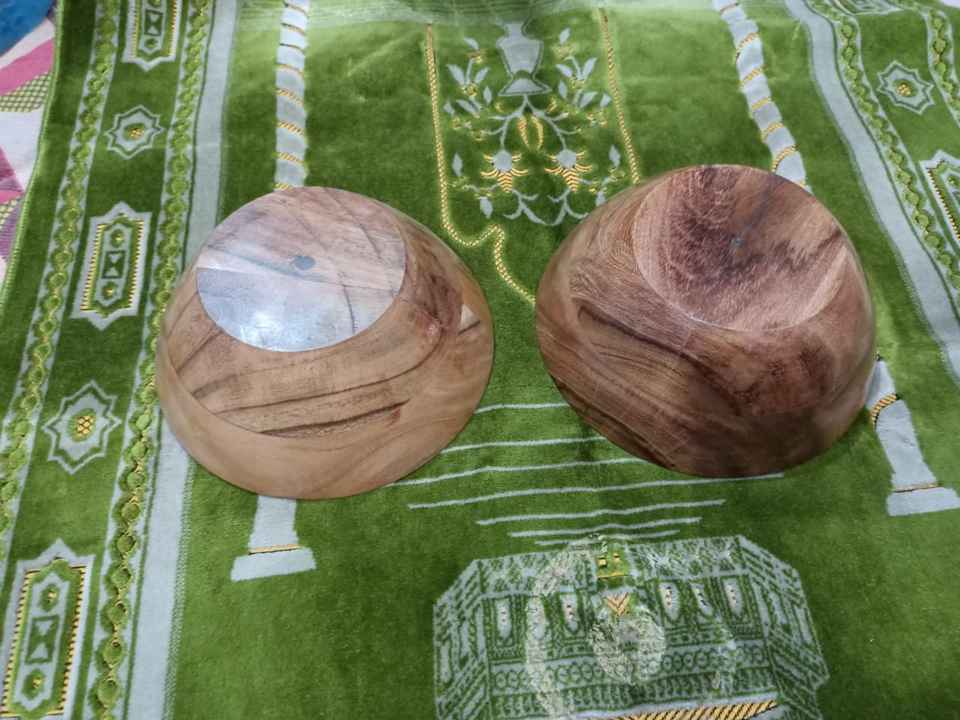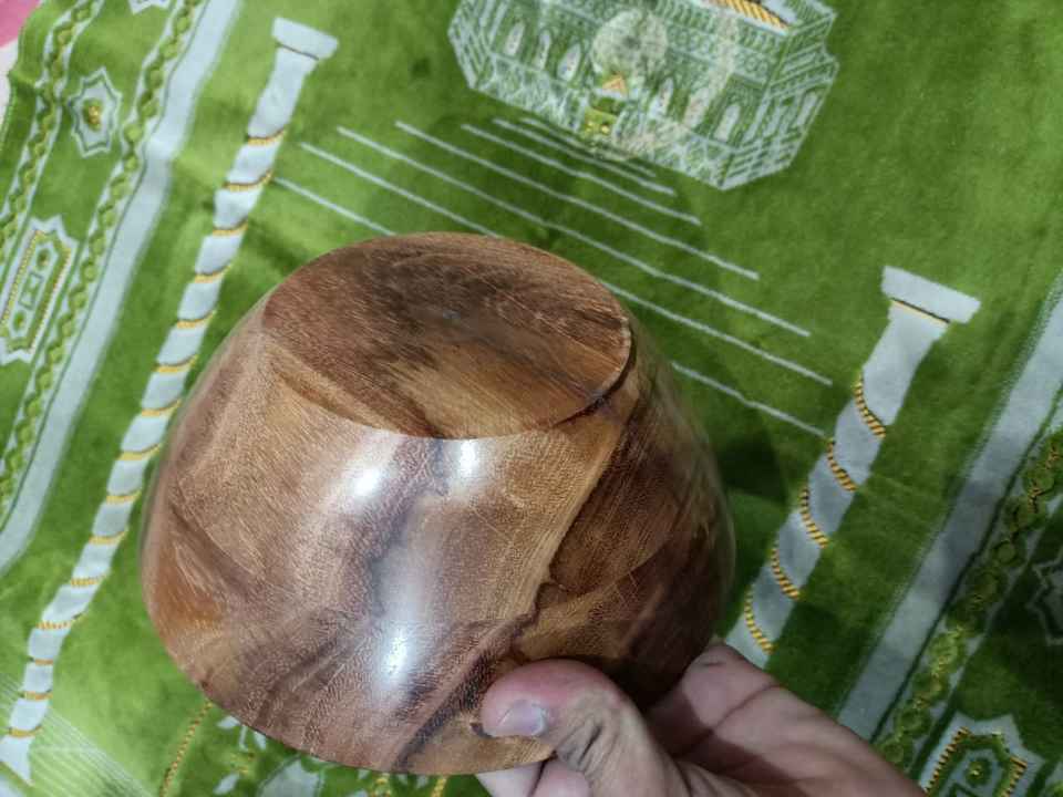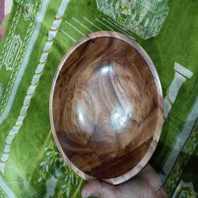 Polished Acacia Wooden Salad Bowl with Ivory Style and Feather Design Natural Crafts for Decorative Purpose