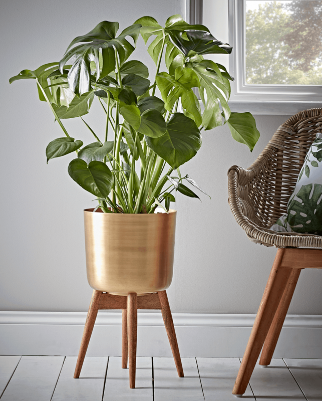 Polished Brass Flower Planter Pot with Stand Round Shape for Nursery Garden Decoration Small Hanging Usage