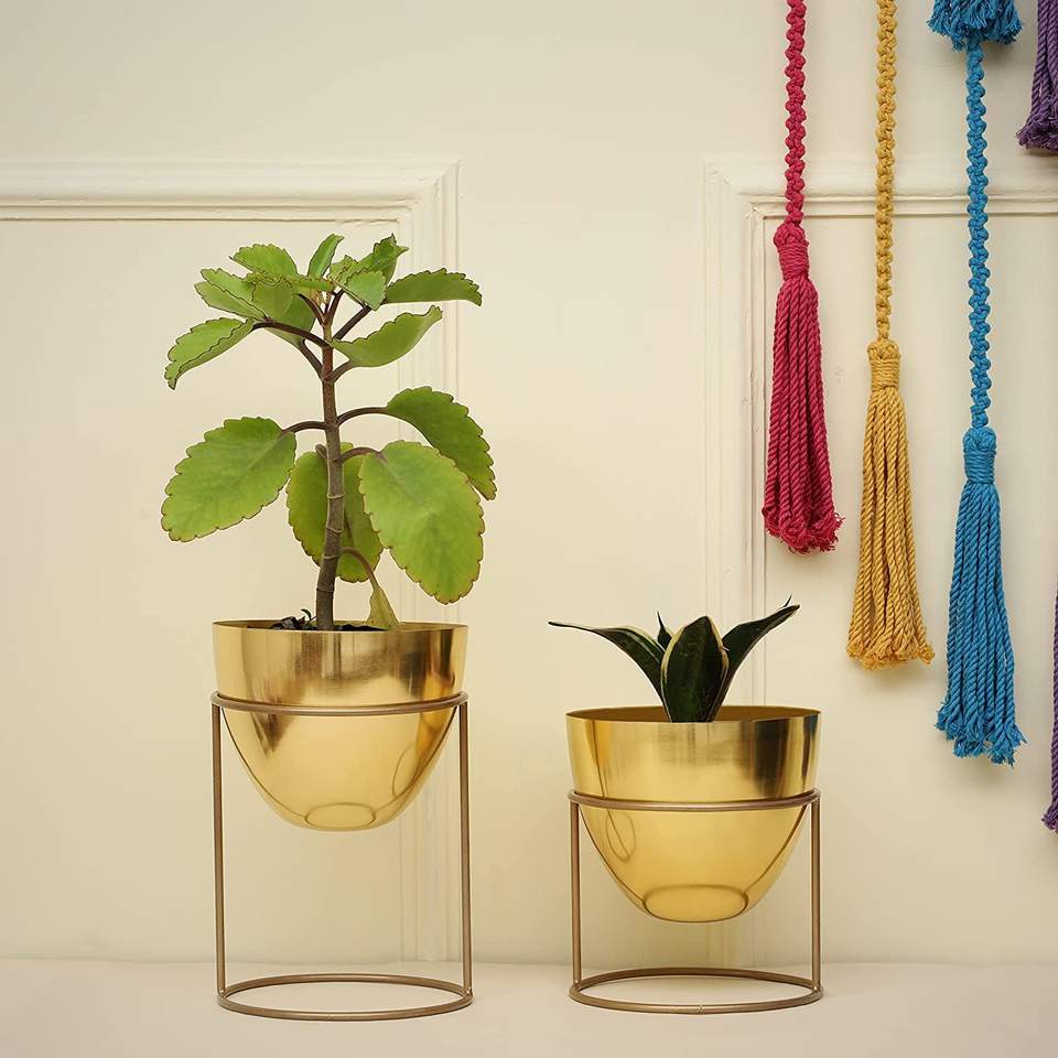 Polished Brass Round Shape Flower Planter Pot with Stand Home Decor Jewelry Inspired Garden Pot