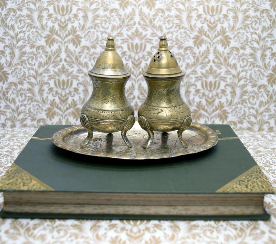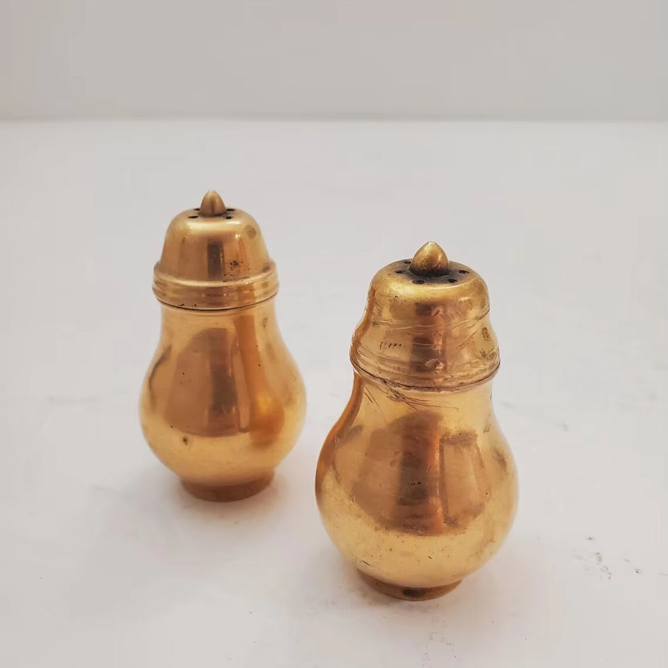 Polished Brass Salt Pepper Set With Sturdy Design And Antique Appeal Ideal For Traditional Indian Dining Setups