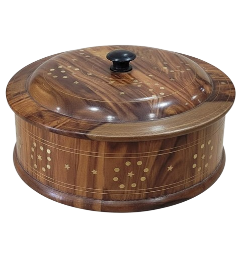 Polished Brown Color Wooden Roti Box with Lid Chapati Storage Container for Roti Dabba Storage Dining Roti Box