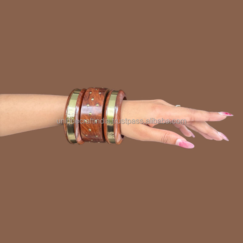 Polished Classic Wooden Bangles Set for Women | Standard Size Natural Finish Eco Friendly Bracelets for Daily Use and Gifting