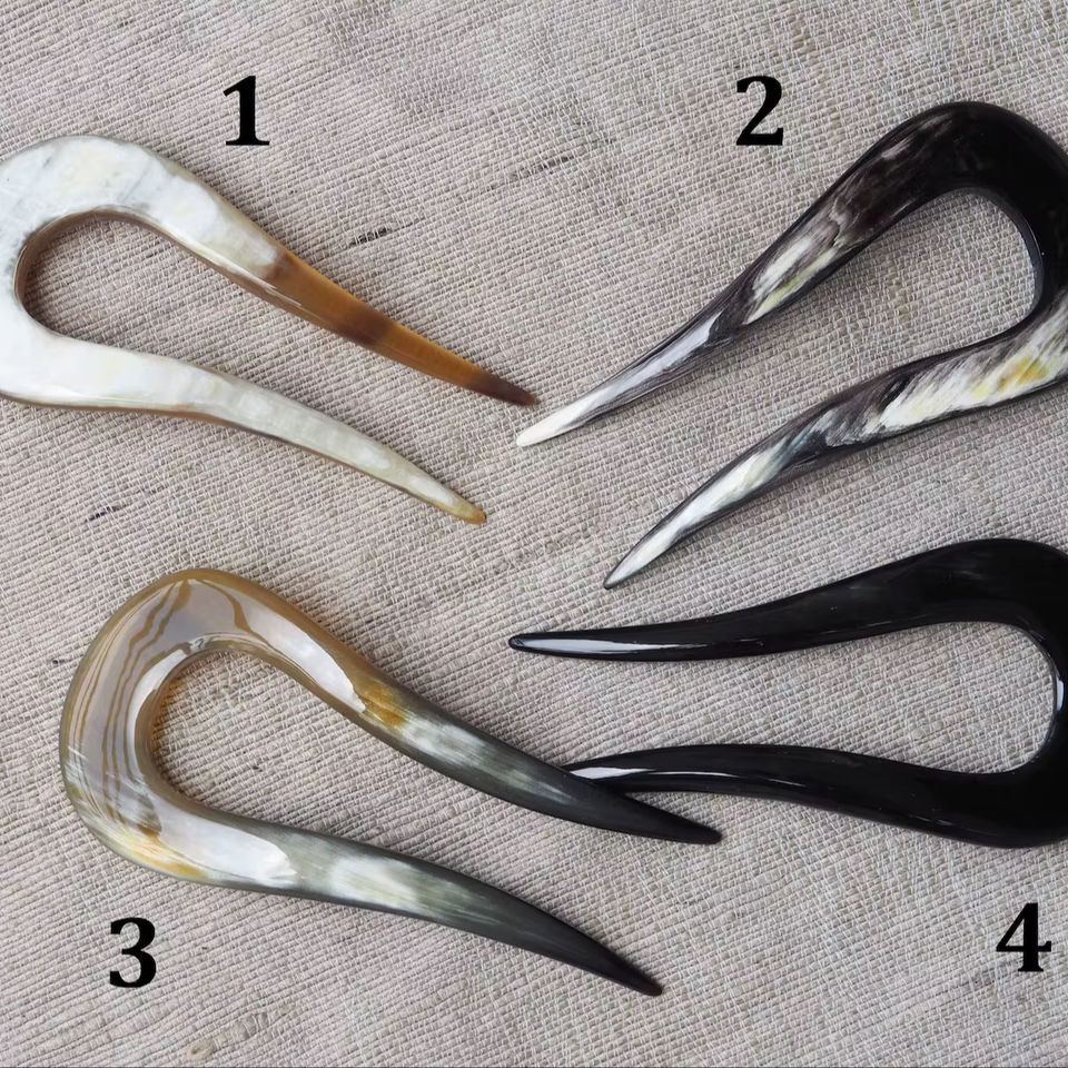 Polished Finish Buffalo Horn Hair Pins for Women's Ox Horn Hair Styling Stick Natural Accessory