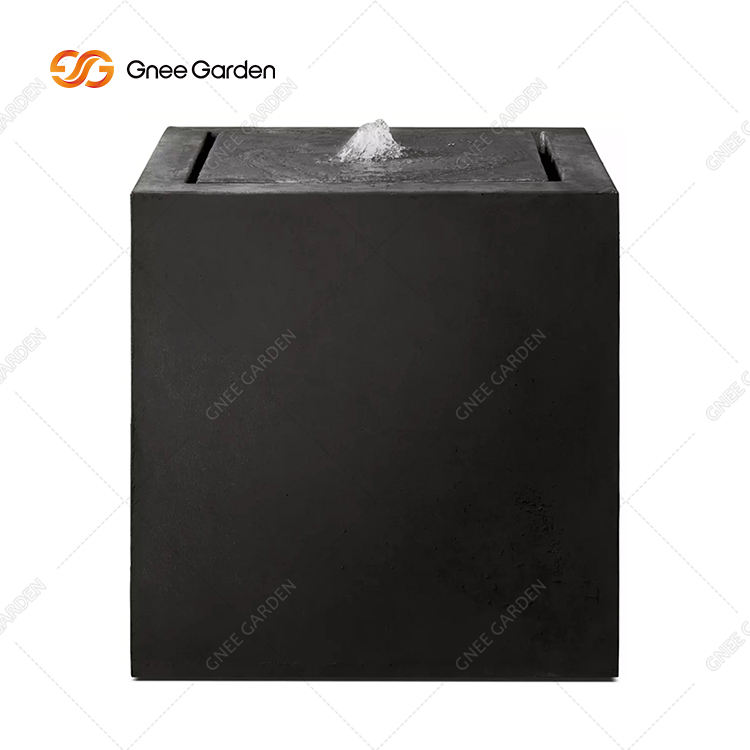Polished Flat Top Black Aluminum Cube Shape Weather Resistant Floor Mount Plug-in Electric Garden Park Landscape Fountain