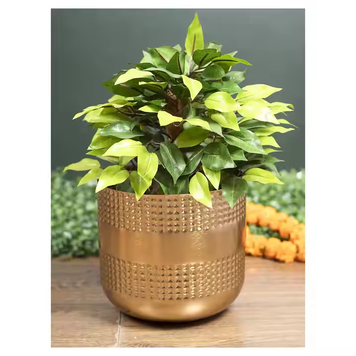 Polished Gold Plated Metal Planter Hammered Design Flower Pots and Vases for Home Garden Supplies Elegant Home Decor