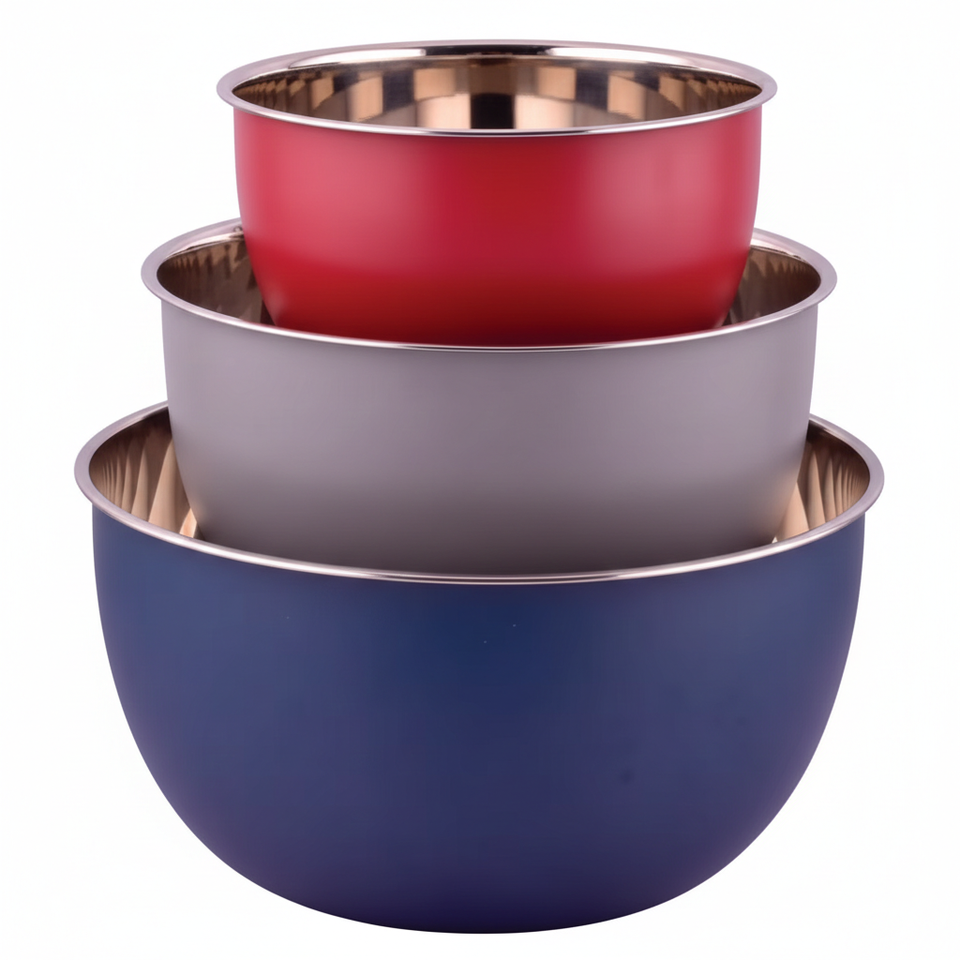 Polished Stainless Steel Mixing Bowl 3-Piece Set Premium Metal Material