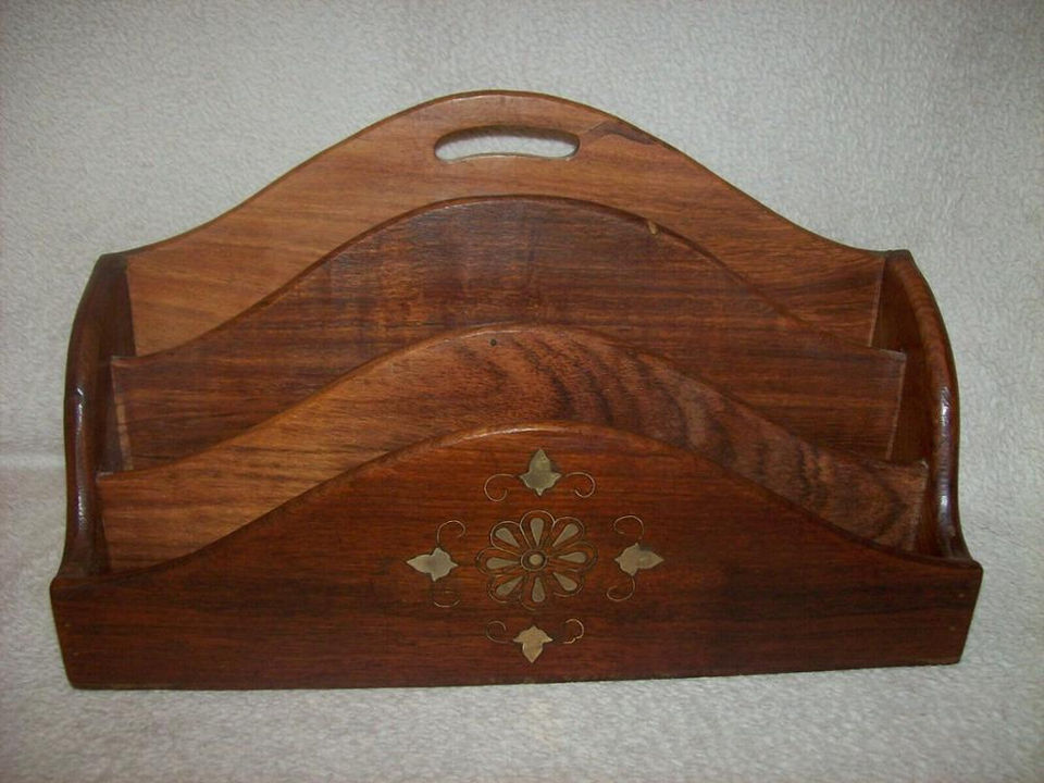 Polished Teak Wooden Letter Rack & Office Stationery Desk Stand Elegant Handcrafted Wood Organizer with Pen Holder