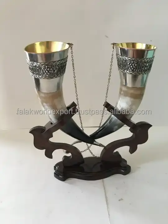 100% Pure Viking Drinking Horn with Carved Buffalo Horn Wood Stand High Quality Home Hotel Restaurant Hot Selling Product By FWE