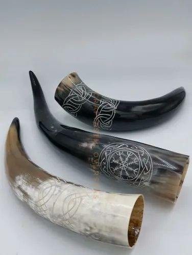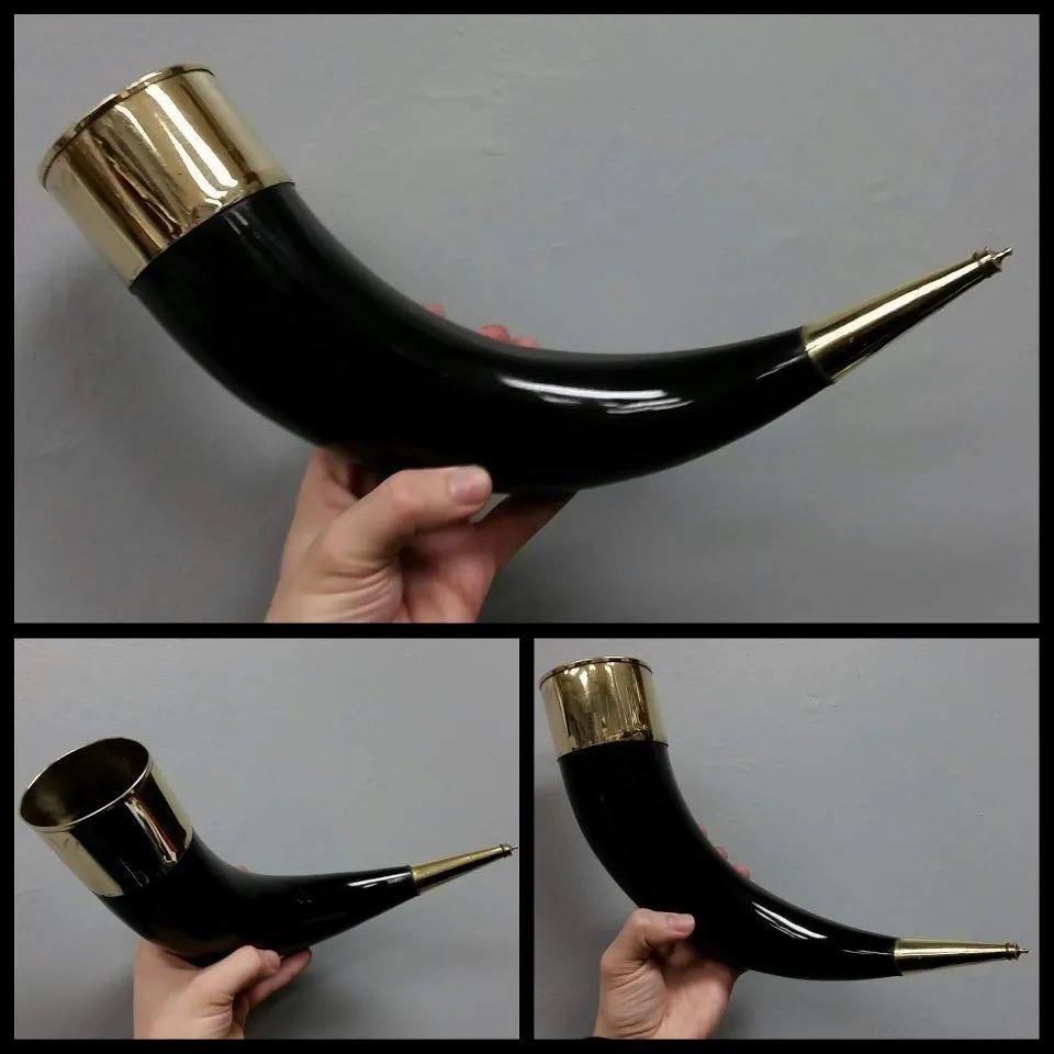 Polished Viking Ceramic Drinking Horn Traditional Animal Style with Stand Carved Faizacrat Cups Natural Crafts