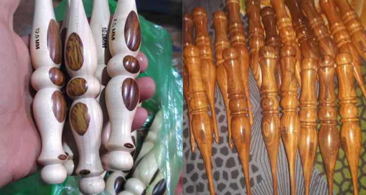 Polished Wooden Crochet Hooks with Artistic Resin Patterns Stylish Custom Crochet Hooks for Yarn Craft Enthusiasts