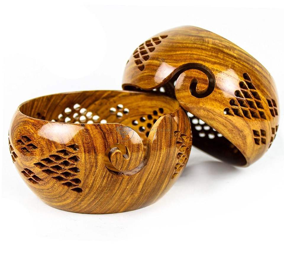 Polished Wooden Yarn Bowl Wood for Crochet Large Size Knitting Bowl 7"x4" Inch Handmade Use and Sale Product Japanese Style