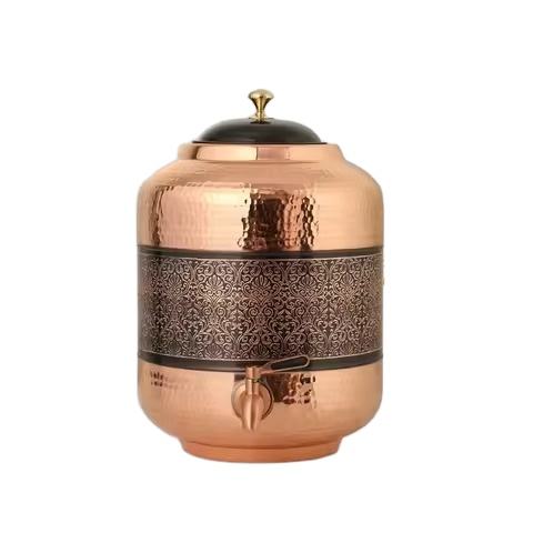 Polished hammered copper water dispenser with an elegant and large capacity beverage container