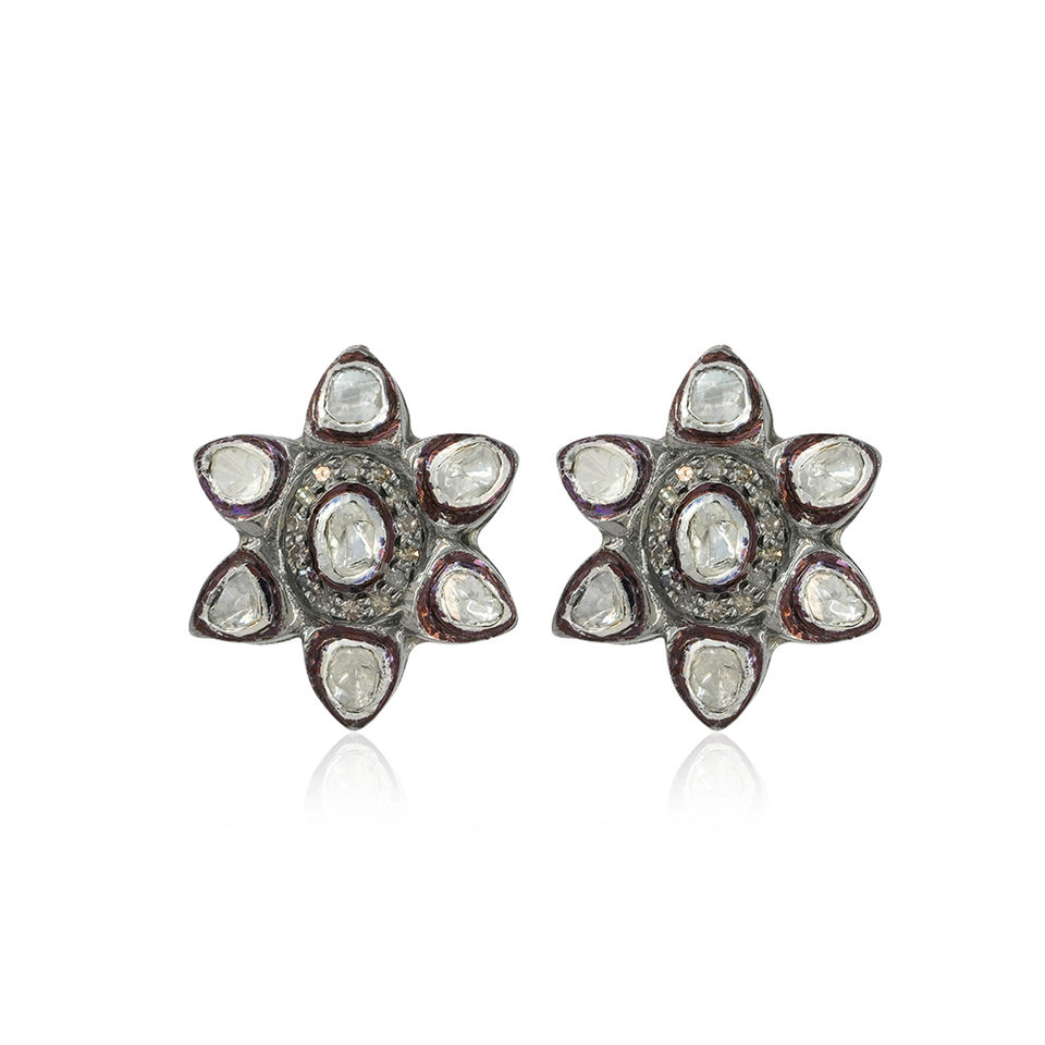 Diamond:Polki Diamond Floral Stud Earrings