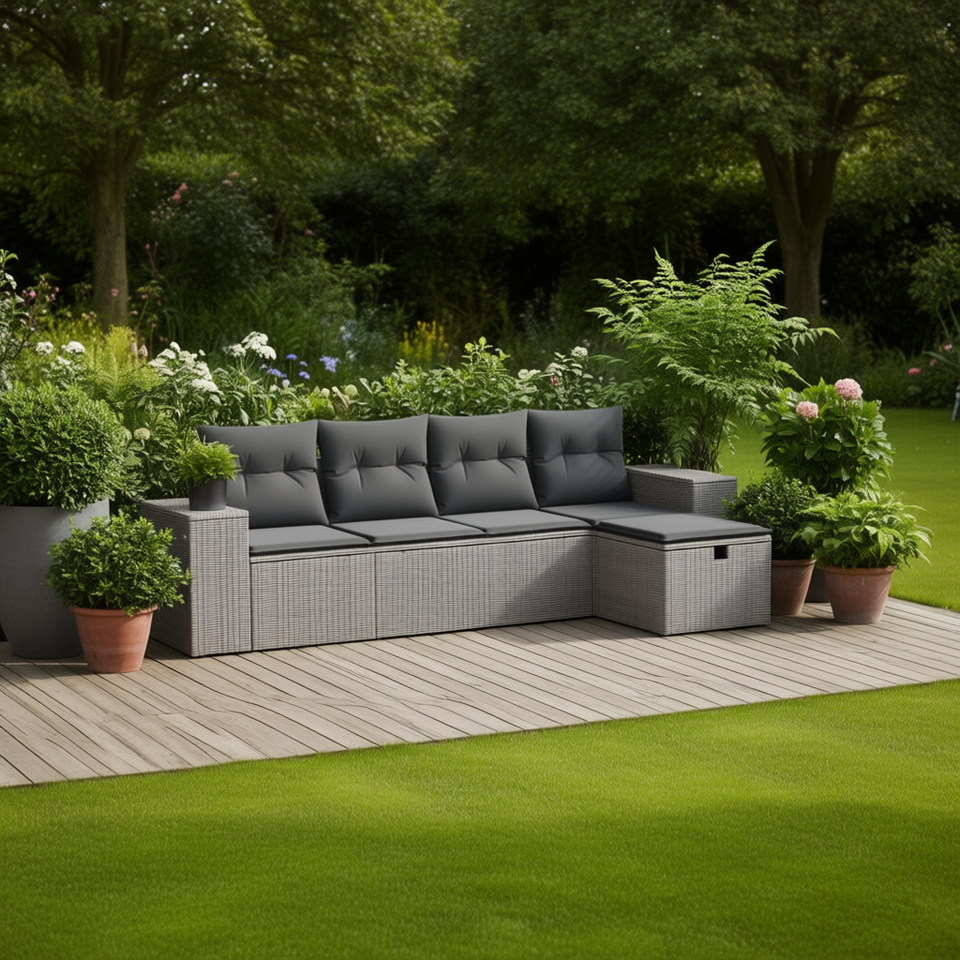 Poly Rattan Garden Sofa Set Grey Outdoor Furniture With Powder Coated Steel Frame Contemporary Design