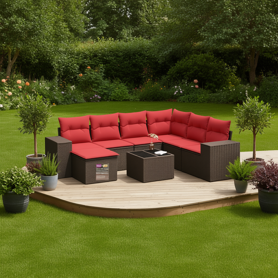 Poly Rattan Garden Sofa Set With Cushions Brown Outdoor Furniture Contemporary Design