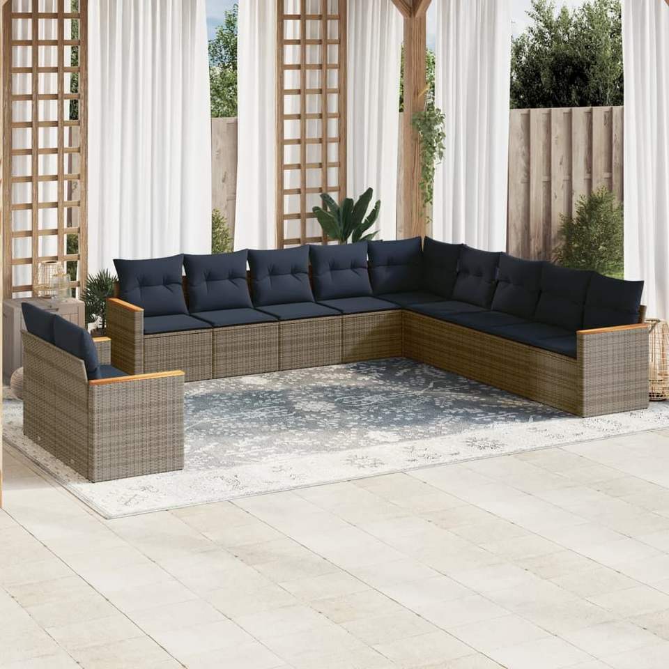 Poly Rattan Garden Sofa Set With Cushions Grey Outdoor Furniture Contemporary Design