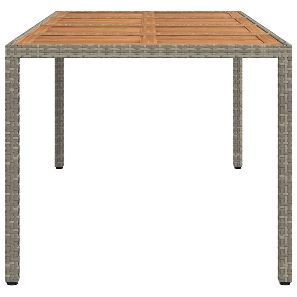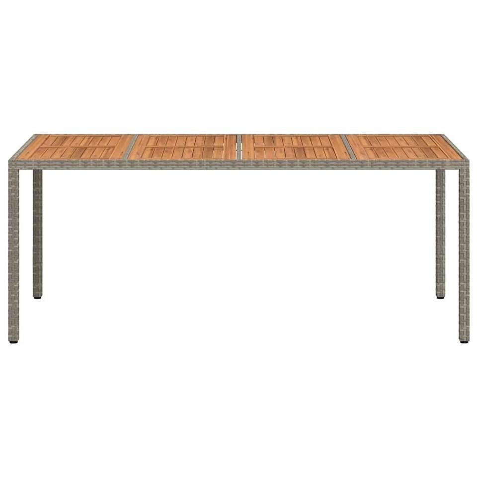 Poly Rattan Garden Table Set 74.8 X 35.4 X 29.5 In Grey Teak Top Steel Frame Outdoor Furniture Contemporary Design Weather