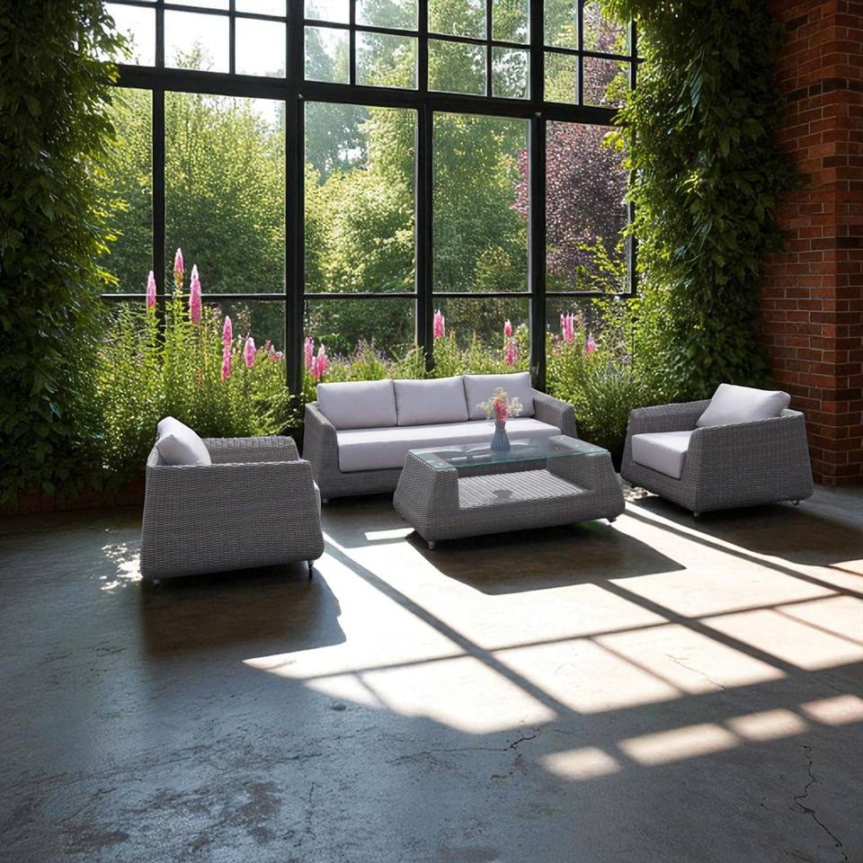 Poly Rattan PRSF-TP3 Faux Wicker Furniture Set Waterproof Outdoor Patio Leisure Seating Moon Shaped Design for Living Room
