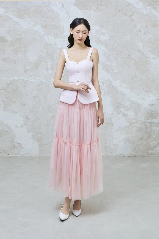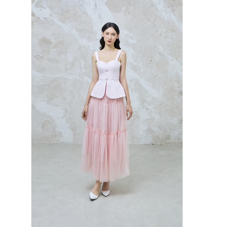 Polyester Brocade Jacquard SKINNY Vietnam Sleeveless Feminine Square Neck Classic VIAN - Jacquard Butterfly Strap Top KA45