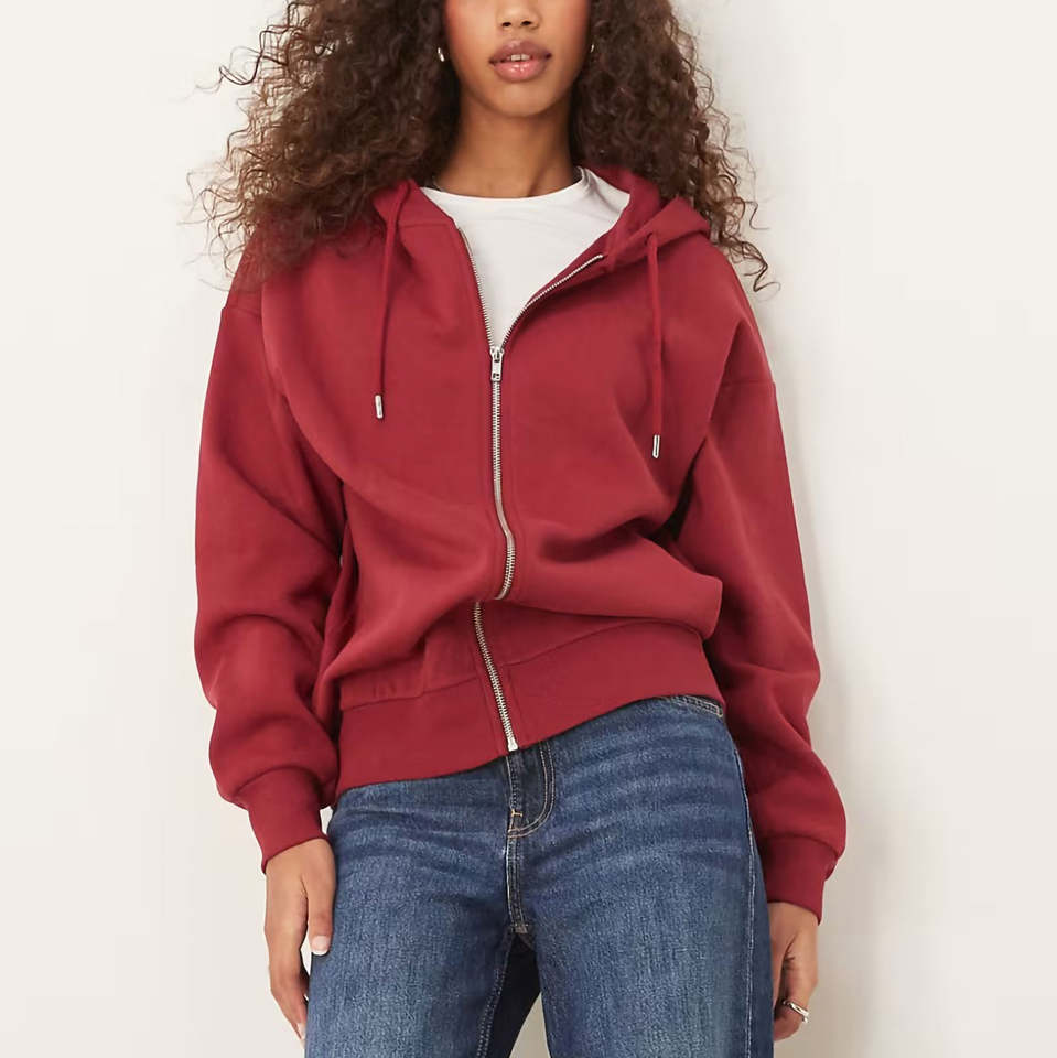 Polyester/Cotton French Terry Boxy Fit Knitted Streetwear for Winter Custom Made Zipper Front Hoodie for Women Solid Red Vintage
