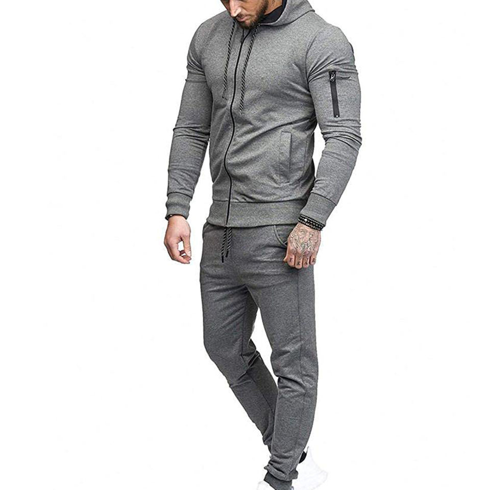 Polyester Drawstring Hooded Men's Tracksuit Premium Quality Skinny Fit Lightweight Fleece Spring Casual Solid Streetwear