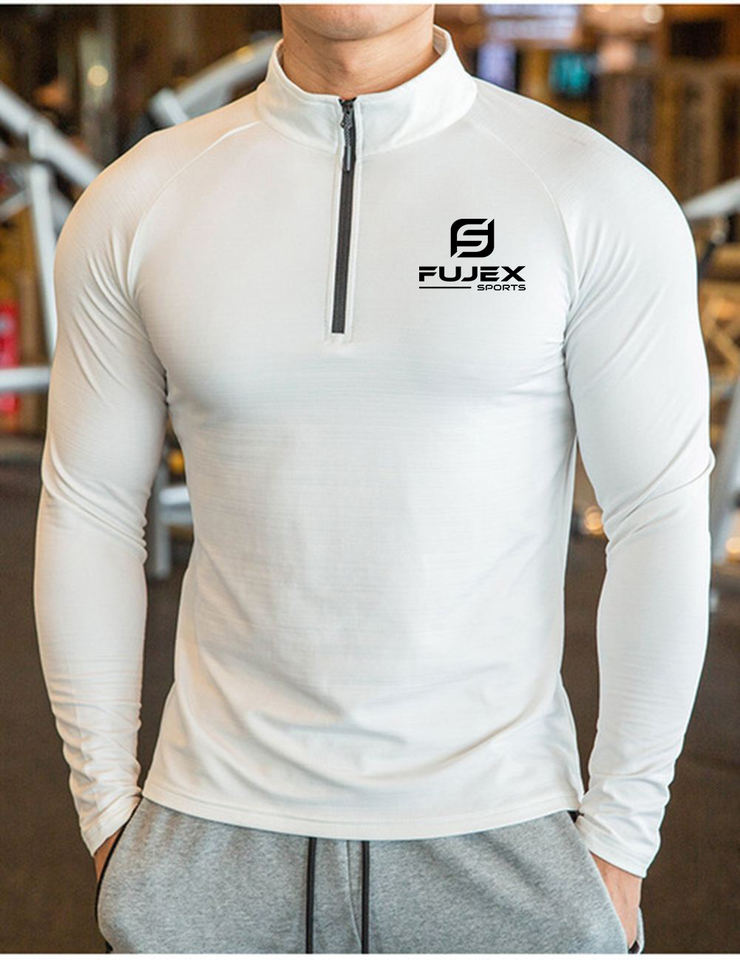 Polyester Fabric Long Sleeve Black T Shirt Men Seamless Half Zip Training Top T Shirt Men Running T Shirt Quick Dry Athletic