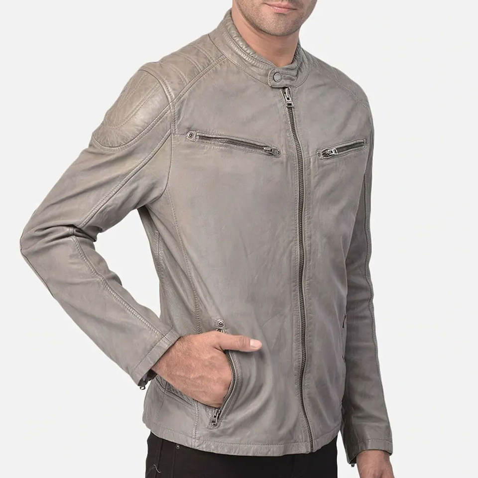Men's Sheep Skin Leather Jacket with Faux Fur Collar Cotton Lining Waterproof & Eco-Friendly Front Logo Long Sleeves