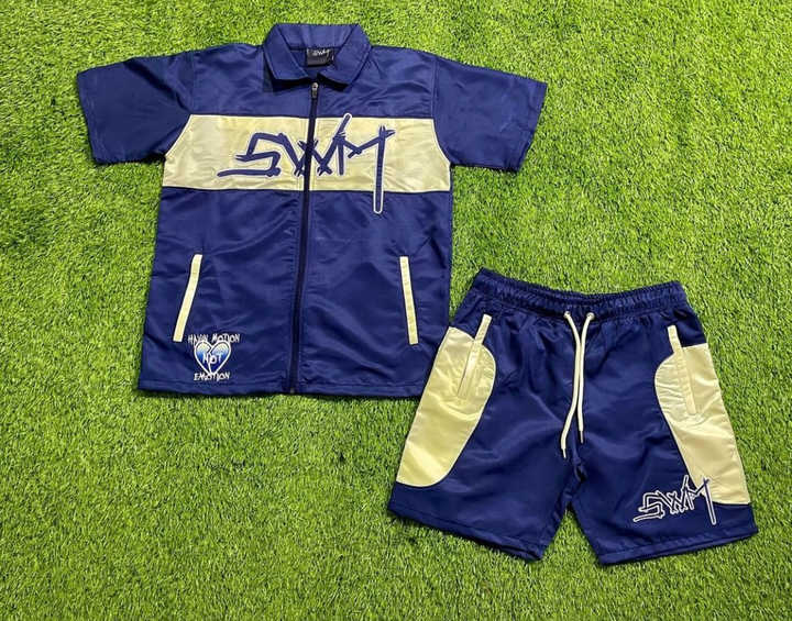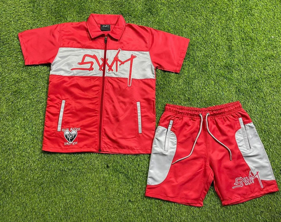 Polyester Nylon Jackets Shorts Set Men's Jogging Suit Patchwork Color Contrast Oversized Windbreaker Short Sets for Men