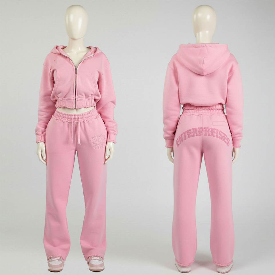 Polyester Personalized Ladies Jogger Set Embossed Tracksuits for Women Custom Embroidered Sweatshirt Set Streetwear Two Piece